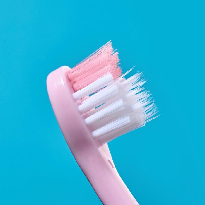 Iepakojumā 2 zobu birstes – rozā un zaļa, katra ar zaķa dizainu, kas padarīs zobu tīrīšanu jautrāku.
