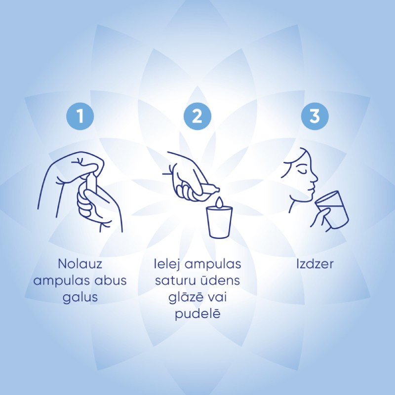 Ampulas saturs jāizšķīdina pusglāzē ūdens.
