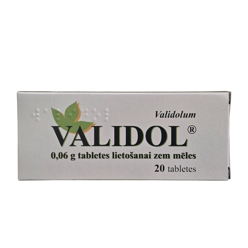 Skatīt visus produktusVALIDOL 0,06 g zem mēles lietojamas tabletes N20
