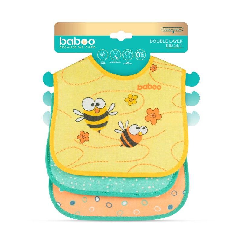 BABOO® kokvilnas siekalu priekšautiņi ir lielisks barošanas aksesuārs jūsu mazulim. Ūdensnecaurlaidīgie priekšautiņi ir izgatavoti no izturīgas kokvilnas, kas nodrošina komfortu bērnam un atvieglo ikdienu vecākiem.