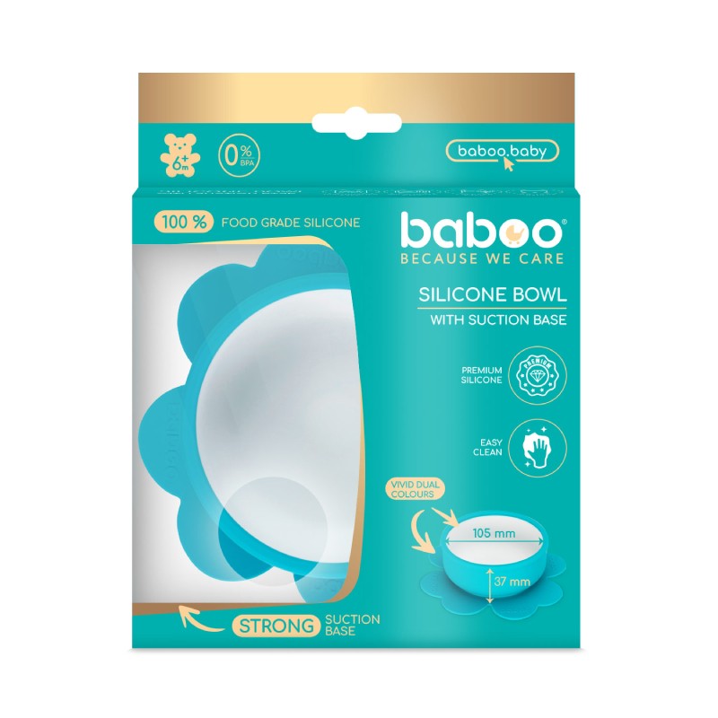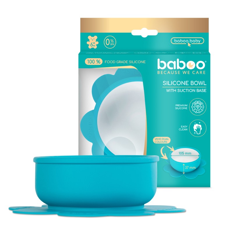 BABOO Silikona bļoda ar lipīgu apakšu, 6+ mēn., tirkīza