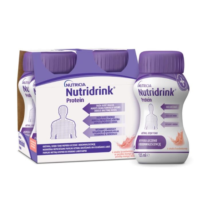Īpašiem medicīniskiem nolūkiem paredzēta pārtika. Uztura režīms cilvēkiem nepietiekama uztura uzņemšanas gadījumā un, kuri ir pakļauti nepietiekama uztura uzņemšanas riskam kādu saslimšanu gadījumā, īpaši pacientiem ar paaugstinātu nepieciešamību pēc olbaltumvielām, piemēram, audzēju gadījumā. Nutridrink Protein ir produkts ikdienas uztura papildināšanai ar augstu olbaltumvielu saturu un ar augstu enerģētisko vērtību. Nesatur lipekli.