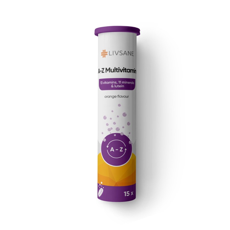 LIVSANE A-Z Multivitamīni ar apelsīnu garšu.
