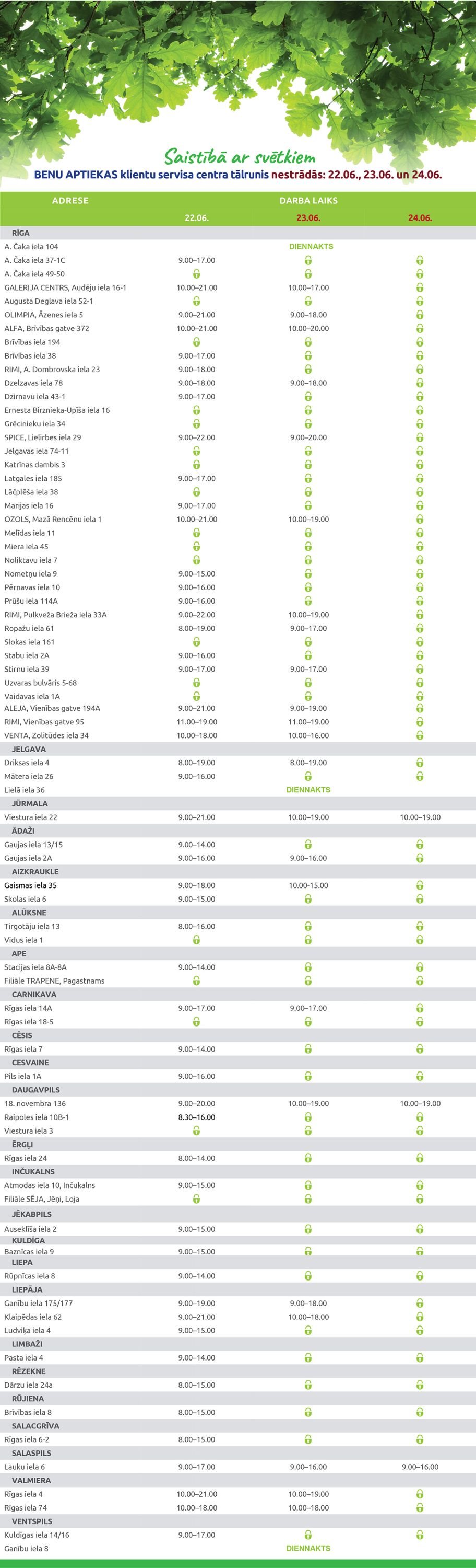 Novēlam jums priecīgu svētku laiku un atgādinām, ka svētkos mainās aptieku darba grafiks. Ieskatieties zemāk esošajā informācijā, lai noskaidrotu sev vēlamās aptiekas darba laiku svētkos.