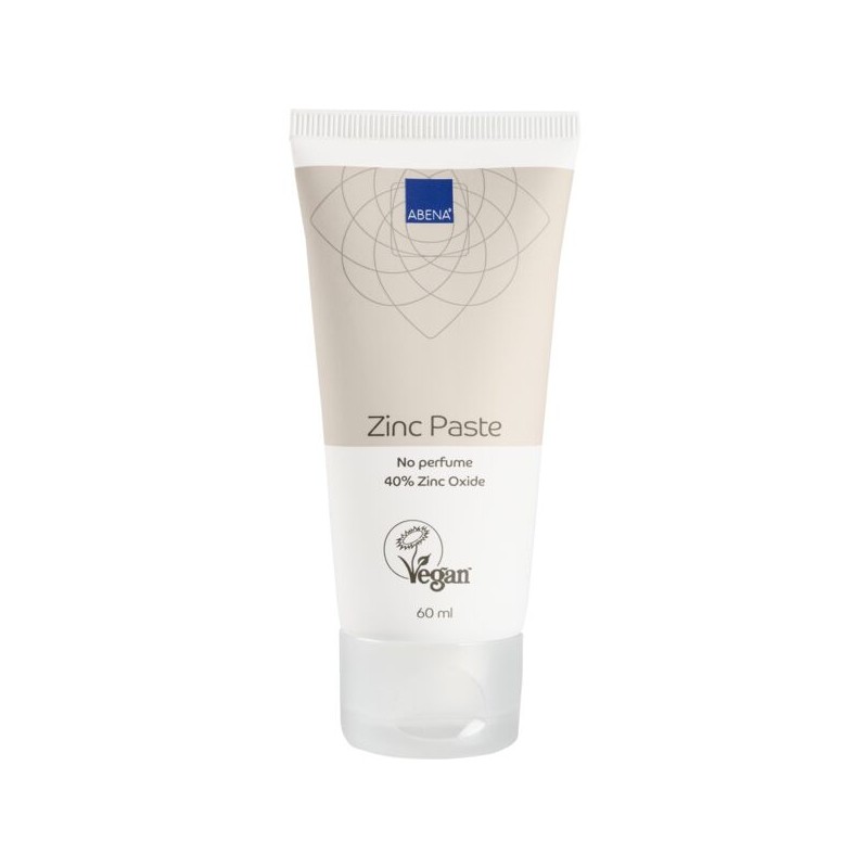 ABENA cinka pasta, bez smaržvielām, 40% cinka. ABENA cinka pasta ir ideāli piemērota ādai, kurai nepieciešama ūdens atgrūdoša barjera. Ar 40% cinka oksīda saturu šī pasta veido aizsargslāni. Unikālā pasta arī nodrošina ādai nepieciešamo mitrumu un aizsardzību, un kopā ar alantoīnu tai ir nomierinoša iedarbība uz ādu. Bez krāsvielām, bez smaržvielām. Piemērots visiem ādas tipiem.