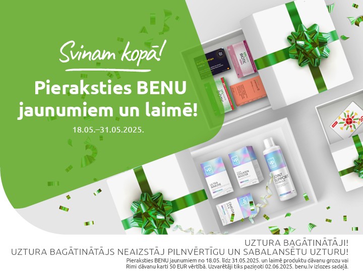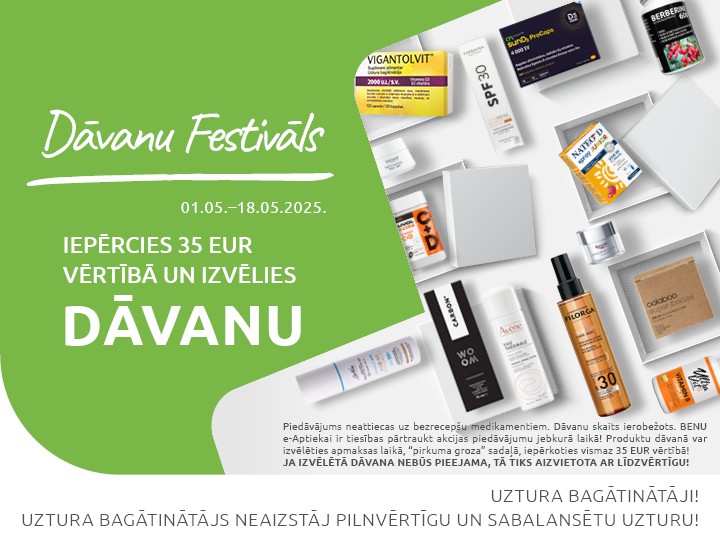 DĀVANU FESTIVĀLS BENU e-Aptiekā! Līdz 31. maijam iepērcies 25 EUR vērtībā uz izvēlies dāvanu!