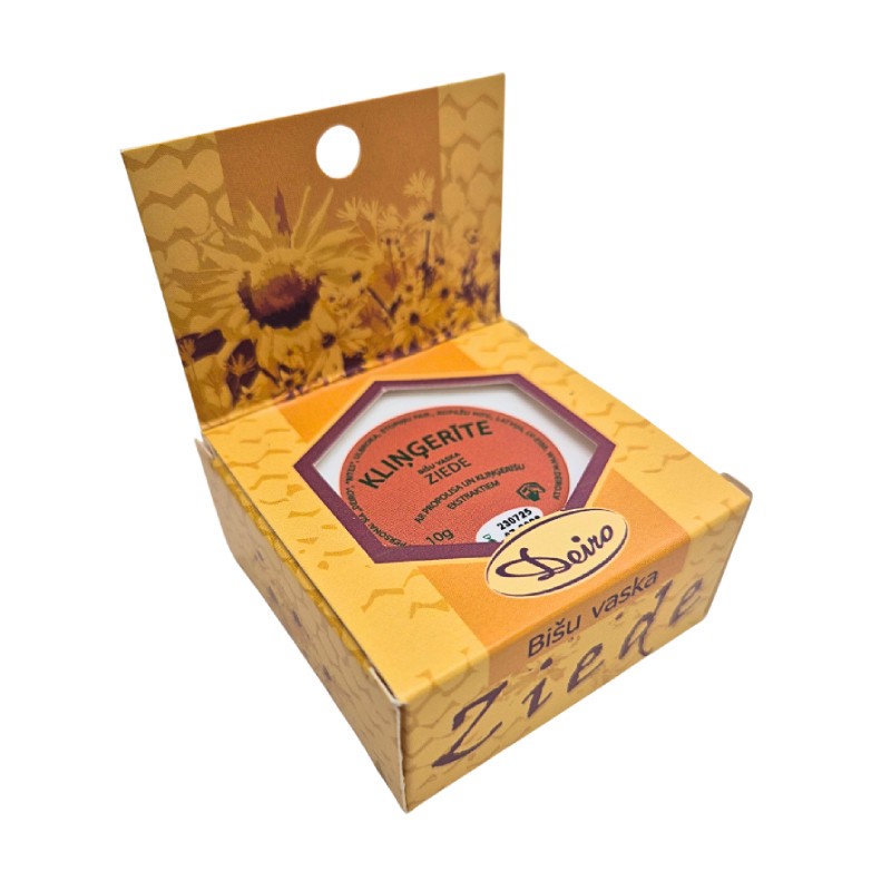 KLINĢERĪTE bišu vaska ziede ar propolisa un kliņģerīšu ekstraktiem 10gKLINĢERĪTE bišu vaska ziede ar propolisa un kliņģerīšu ekstraktiem 10gKLINĢERĪTE bišu vaska ziede ar propolisa un kliņģerīšu ekstraktiem 10g