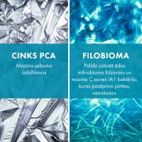 INOVĀCIJA: Nesabalansēta ādas mikrobioma veicina aknes simptomu attīstīšanos un palielināšanos, tai skaitā C.acnes baktēriju vairošanos. Cīņai ar šo problēmu tika izstrādāta mikrobioma līdzsvaru atbalstošā formula, kuras sastāvā ir [Phylobioma], kas darbojas pret šo baktēriju vairošanos, ka arī tehnoloģija, kas uztur pareizu ādas pH līmeni, lai pamanāmi samazinātu ekzēmu veidošanos.
