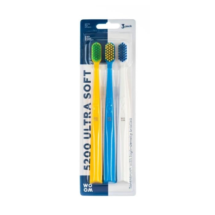 Woom zobu birste ar īpaši maigiem un liela blīvuma sariņiem - 5200. Komplektā 3 zobu birstes.